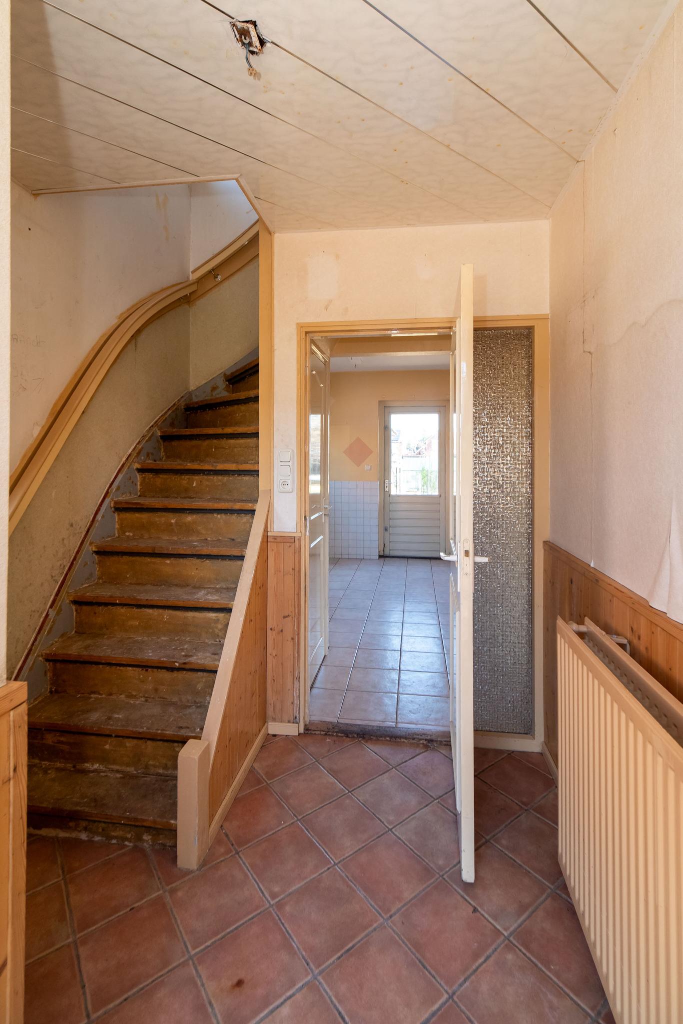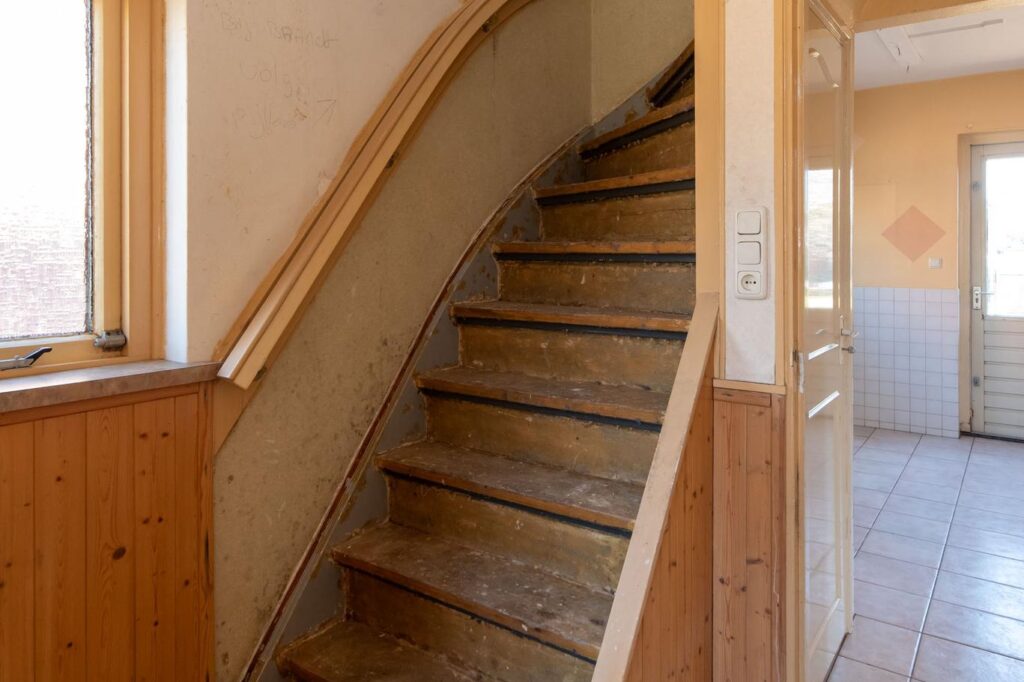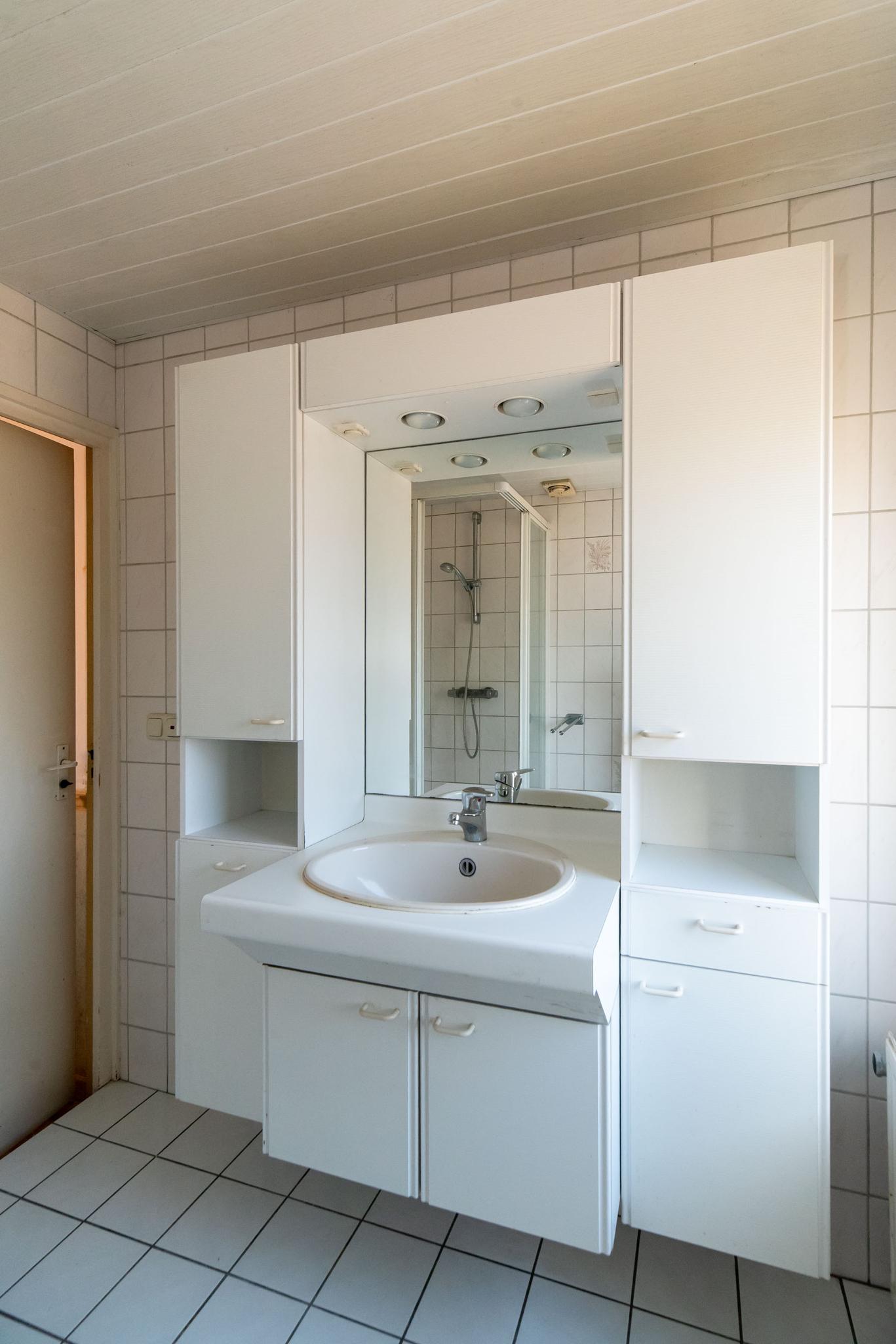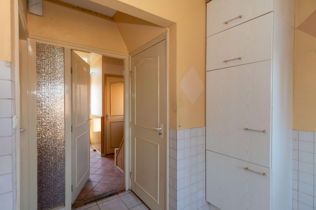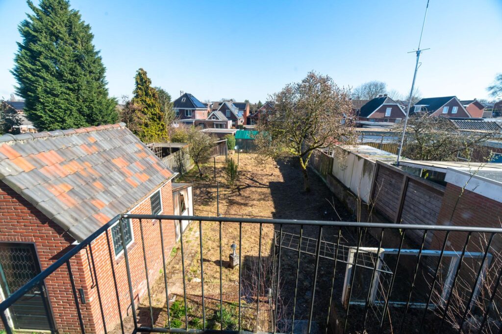 De eerste verdieping heeft drie slaapkamers, waarvan twee met een vaste kastenwand en één toegang heeft tot een balkon. De badkamer is voorzien van douche, toilet en wastafel maar is ook aan vernieuwing toe.