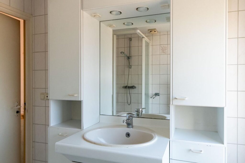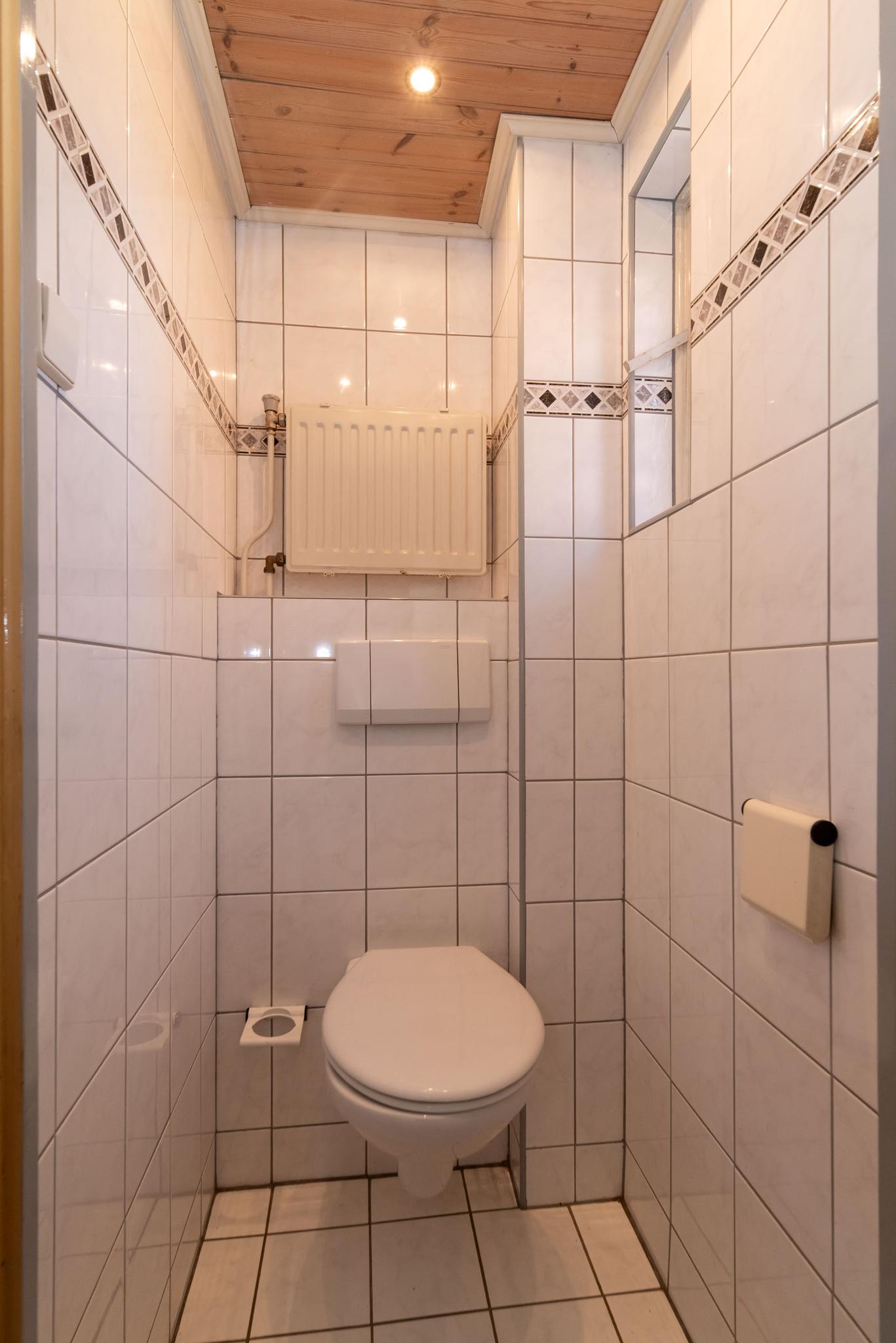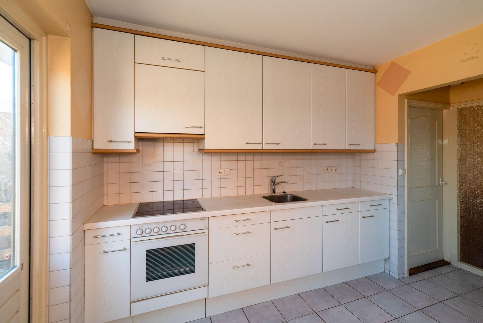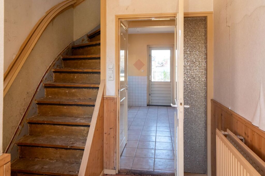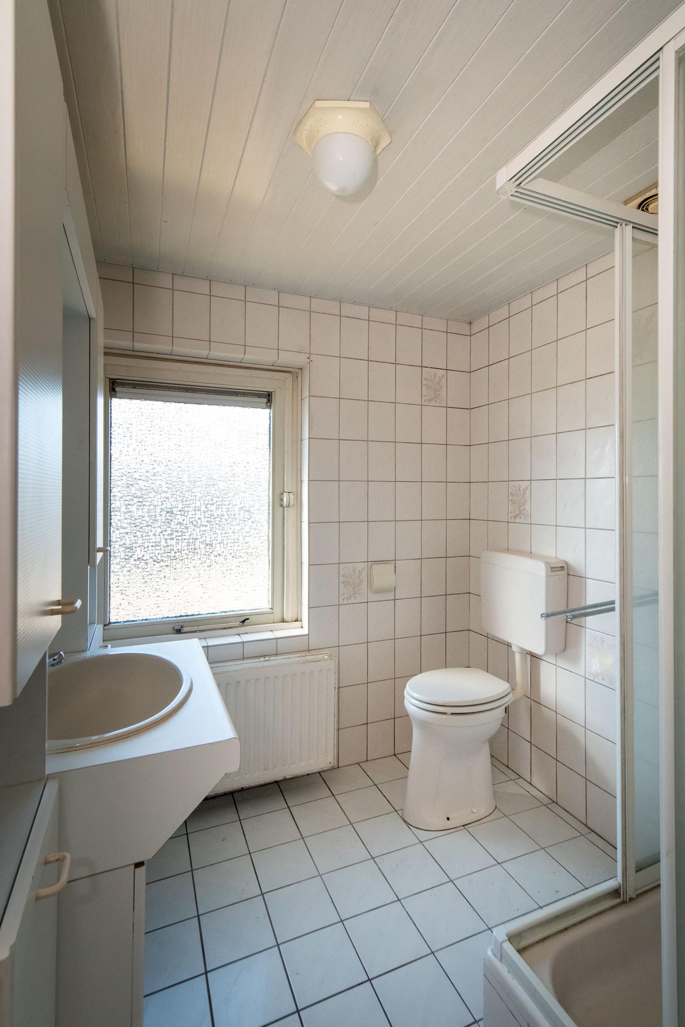 De eerste verdieping heeft drie slaapkamers, waarvan twee met een vaste kastenwand en één toegang heeft tot een balkon. De badkamer is voorzien van douche, toilet en wastafel maar is ook aan vernieuwing toe.
