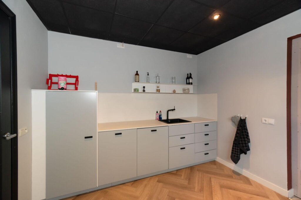 De bedrijfsruimte is gelegen aan de straatzijde en beschikt over eigen parkeermogelijkheden. De ruimte is ingericht als showroom/ kantoorruimte en is recentelijk compleet vernieuwd. Zo beschikt de ruimte over een nieuwe keuken, vloer- en wandafwerking en airco. Naast de circa. 170 m2 kantoorruimte beschikt de hal ook over een eigen opslagruimte en berging.