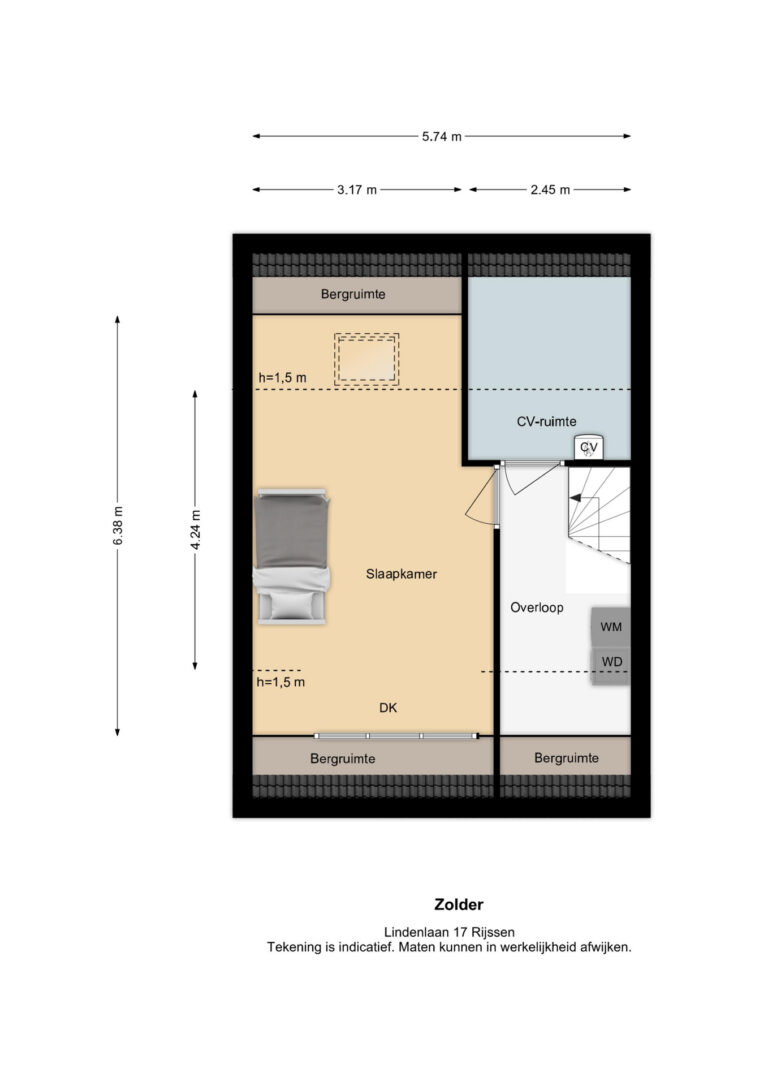 Vermelde maatvoeringen en gepubliceerde plattegronden zijn opgesteld binnen de kaders van de Branche Brede Meetinstructie; gebaseerd op NEN2580, met een onderverdeling in verschillende gebruiksoppervlakten. Omdat de publicatie ingevoerde gegevens via diverse, externe kanalen geschiedt, kan Daan Makelaars BV geen aansprakelijkheid aanvaarden voor onjuiste weergave van informatie