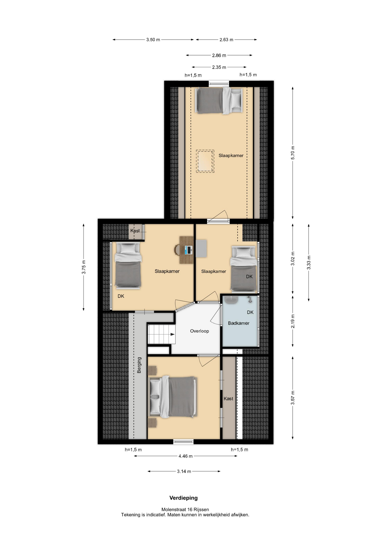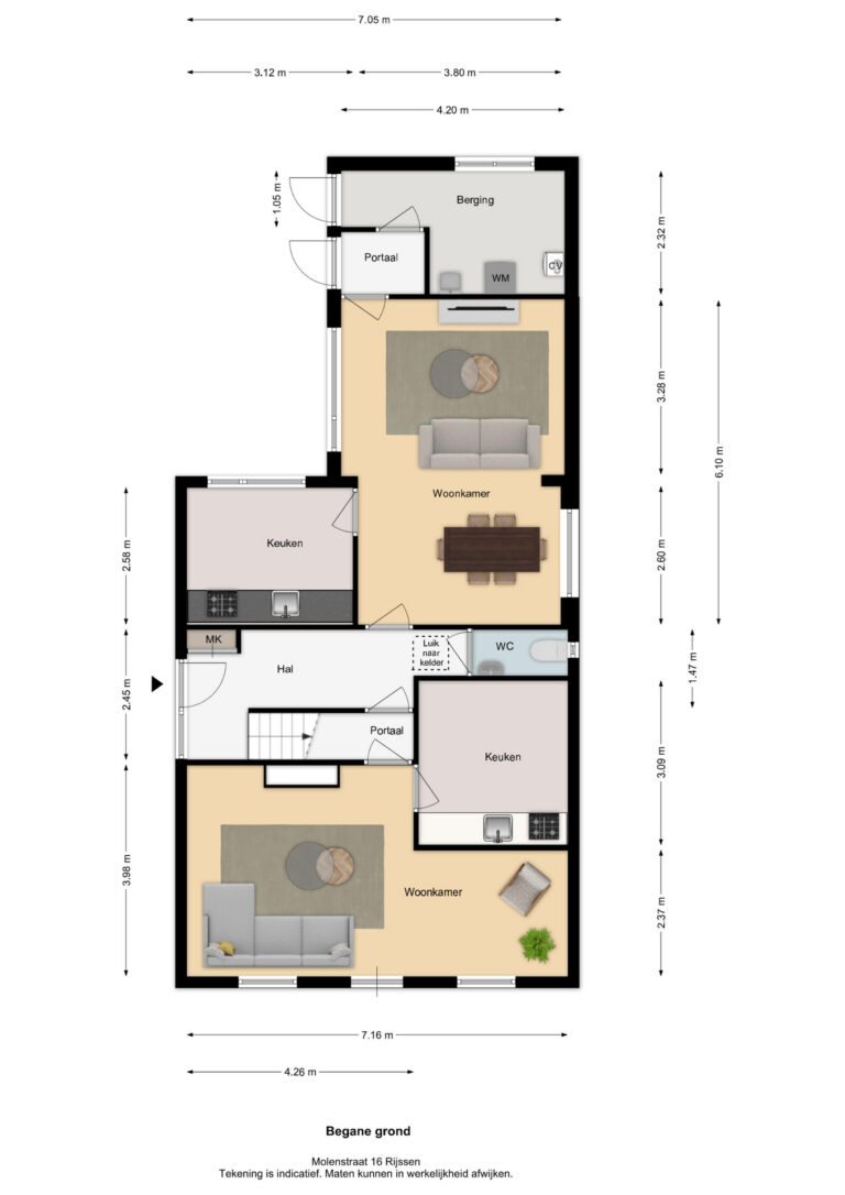 Let op: De vermelde afmetingen en gepubliceerde plattegronden zijn opgesteld volgens de Branche Brede Meetinstructie, gebaseerd op NEN2580, met onderverdeling in verschillende gebruiksoppervlakten. Omdat de publicatie van informatie via diverse externe kanalen verloopt, kan Daan Makelaars BV geen aansprakelijkheid aanvaarden voor onjuiste weergave van informatie.