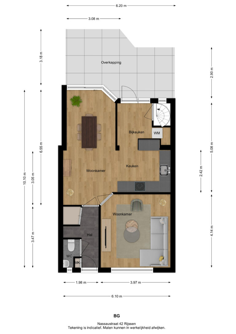 Vermelde maatvoeringen en gepubliceerde plattegronden zijn opgesteld binnen de kaders van de Branche Brede Meetinstructie; gebaseerd op NEN2580, met een onderverdeling in verschillende gebruiksoppervlakten. Omdat de publicatie ingevoerde gegevens via diverse, externe kanalen geschiedt, kan Daan Makelaars BV geen aansprakelijkheid aanvaarden voor onjuiste weergave van informatie.