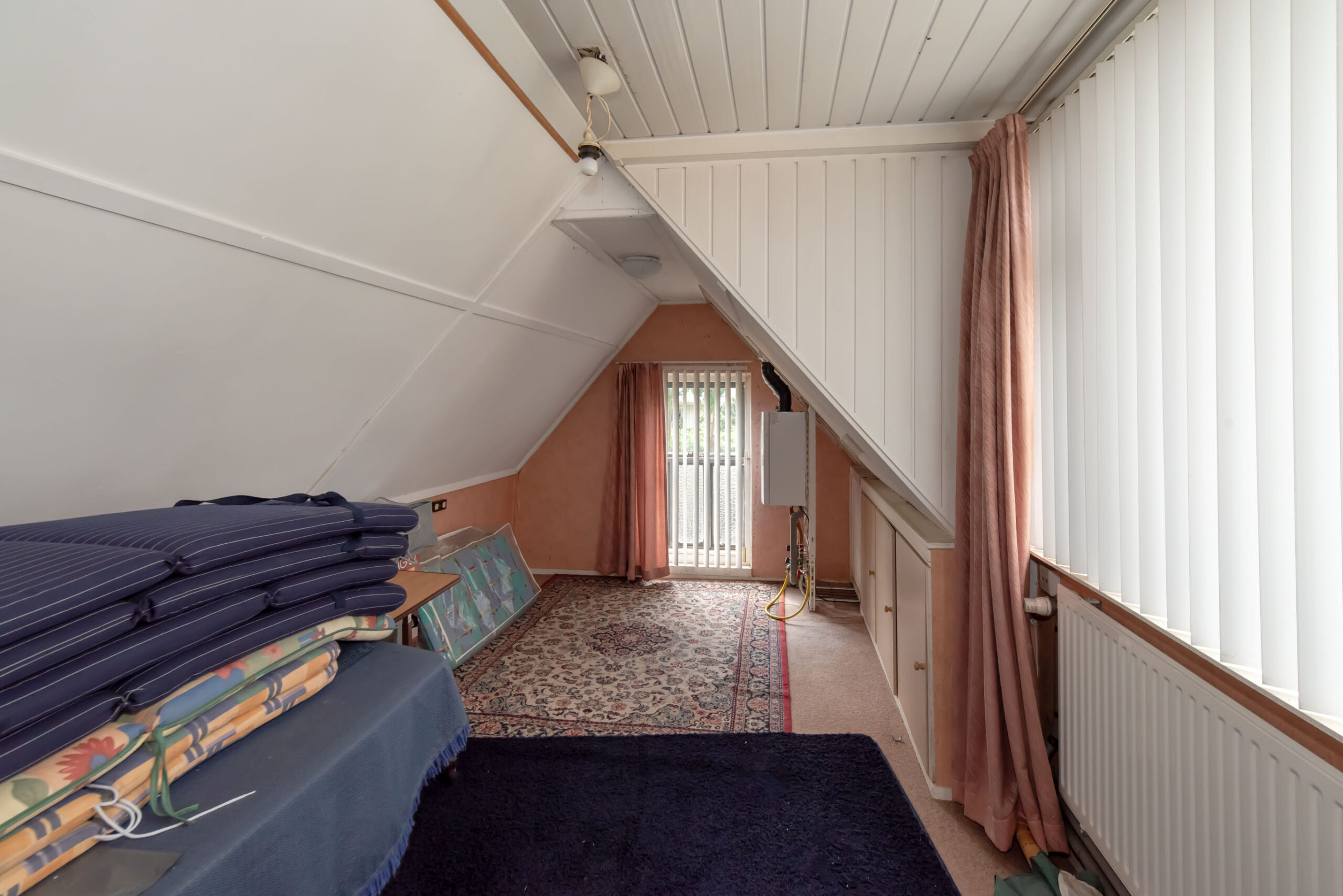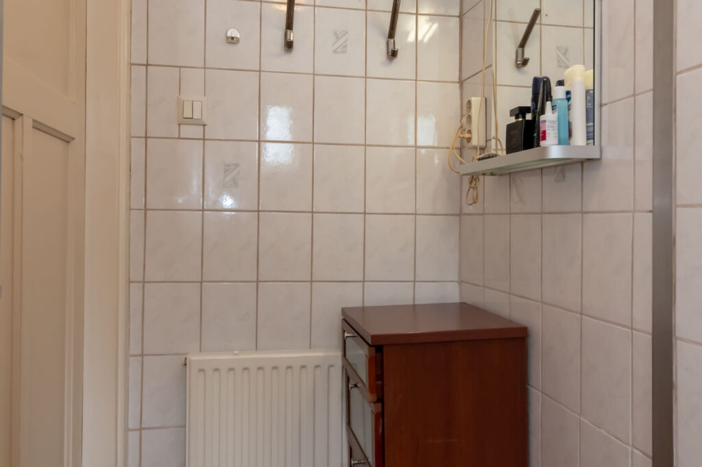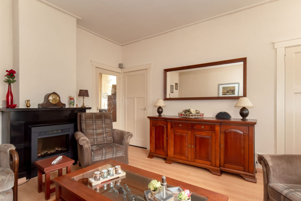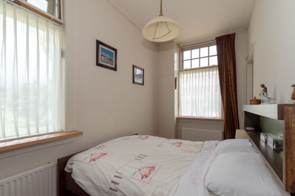 Op de eerste verdieping vind je drie slaapkamers, een pantryruimte en een kamer die momenteel is ingericht als woonkamer. Je hebt hier de mogelijkheid om de verdieping in te richten met vier ruime slaapkamers. In de slaapkamer van het achterhuis is de cv-ketel geplaatst.