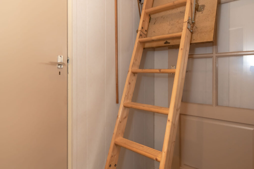 De tweede verdieping is middels een vlizotrap te bereiken en in gebruik als bergruimte.