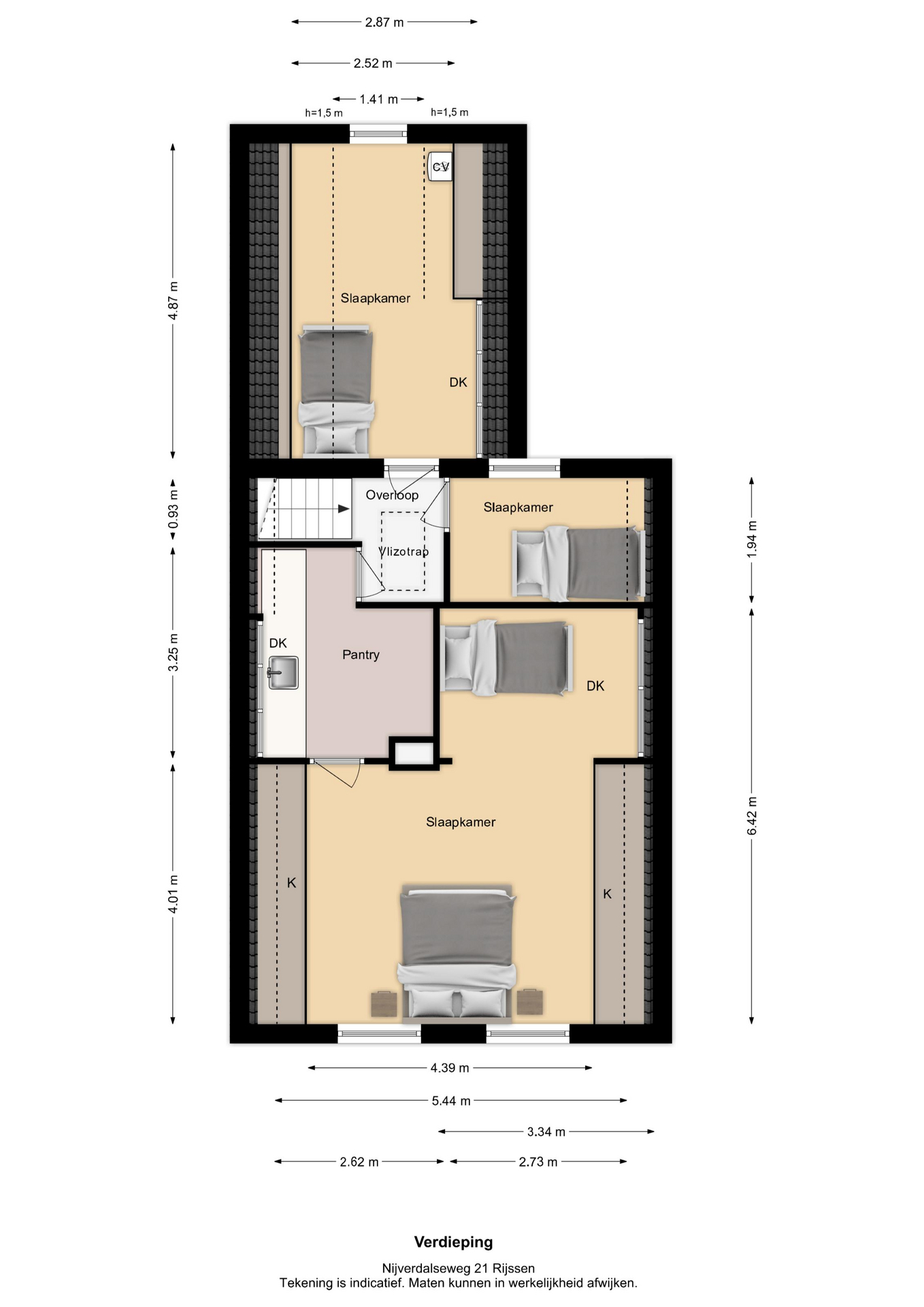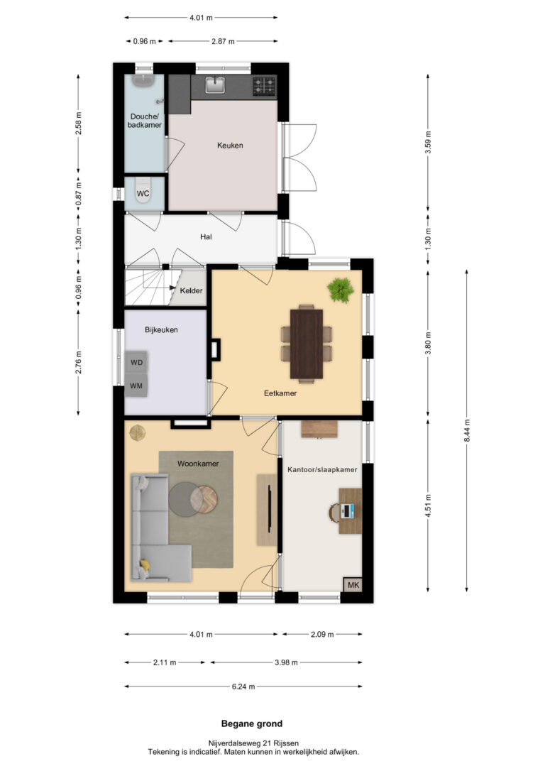 Vermelde maatvoeringen en gepubliceerde plattegronden zijn opgesteld binnen de kaders van de Branche Brede Meetinstructie; gebaseerd op NEN2580, met een onderverdeling in verschillende gebruiksoppervlakten. Omdat de publicatie ingevoerde gegevens via diverse, externe kanalen geschiedt, kan Daan Makelaars BV geen aansprakelijkheid aanvaarden voor onjuiste weergave van informatie.