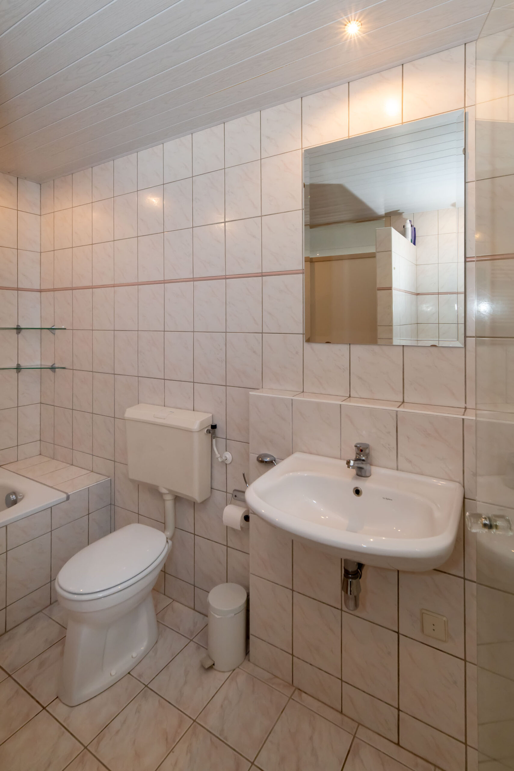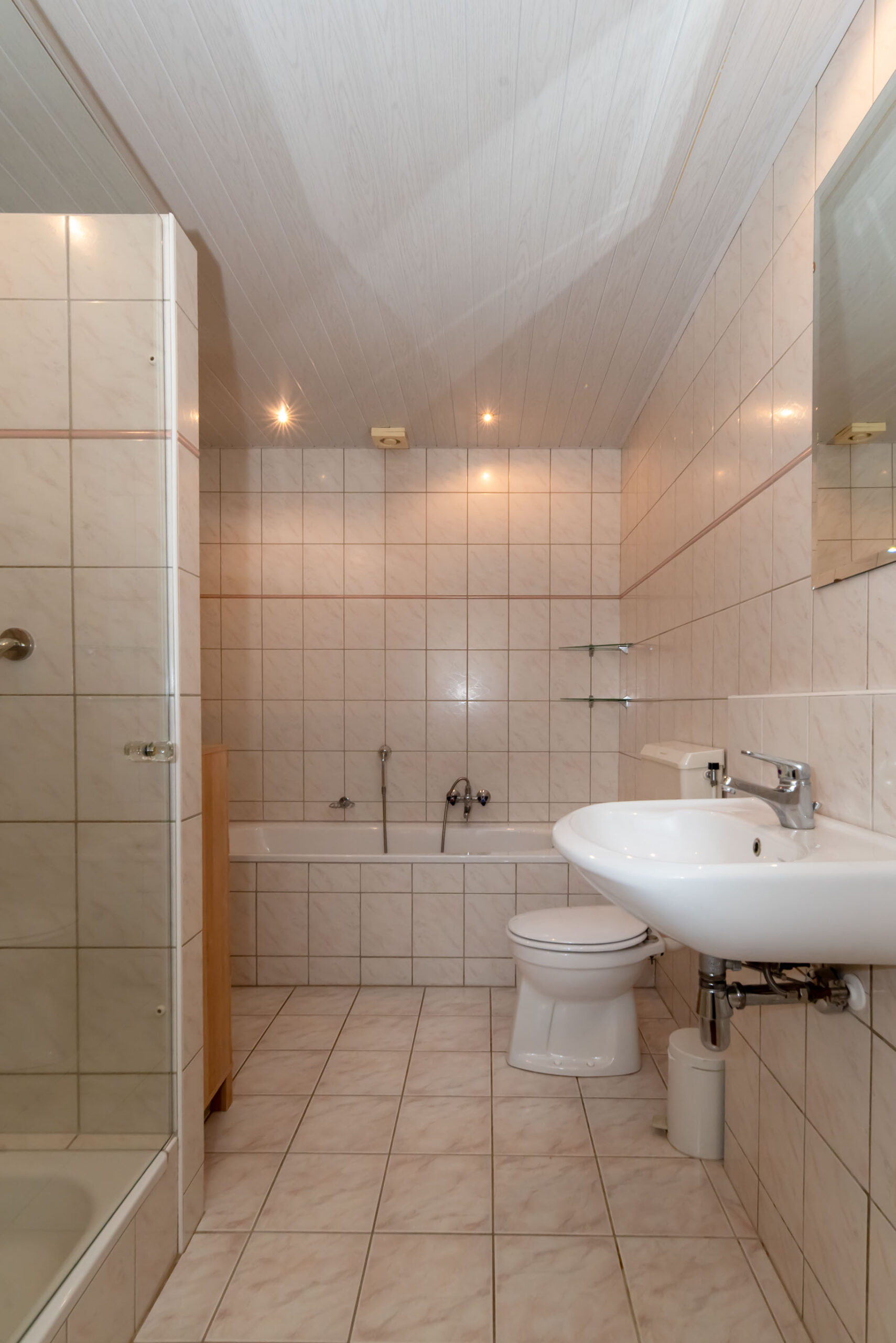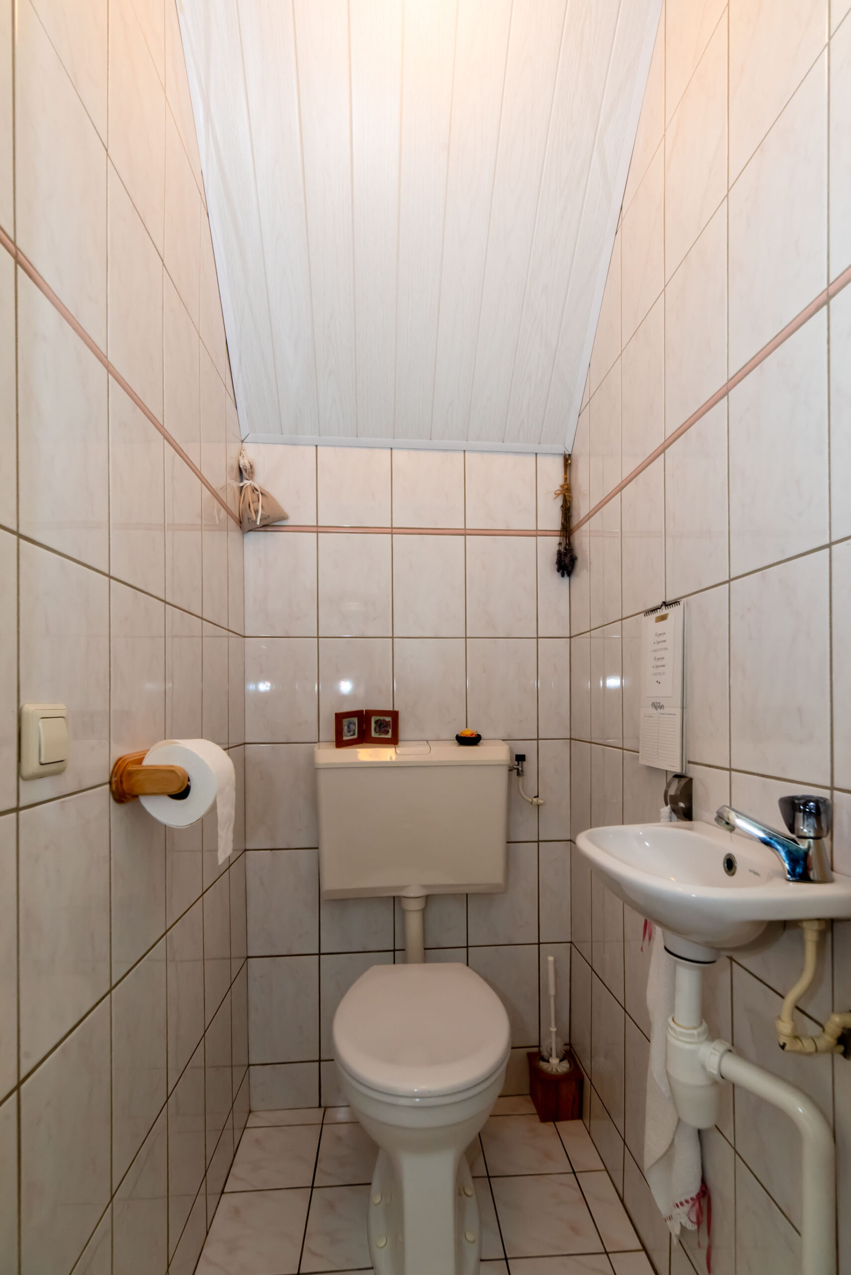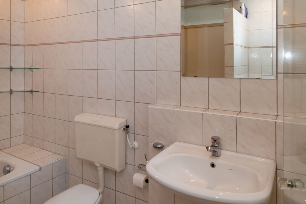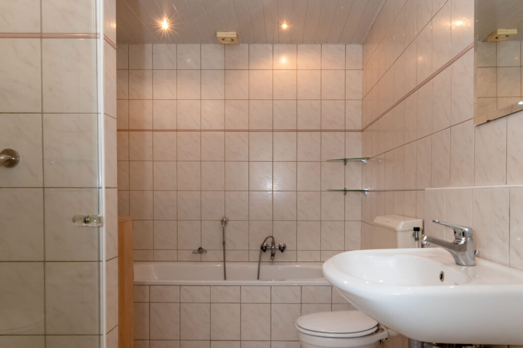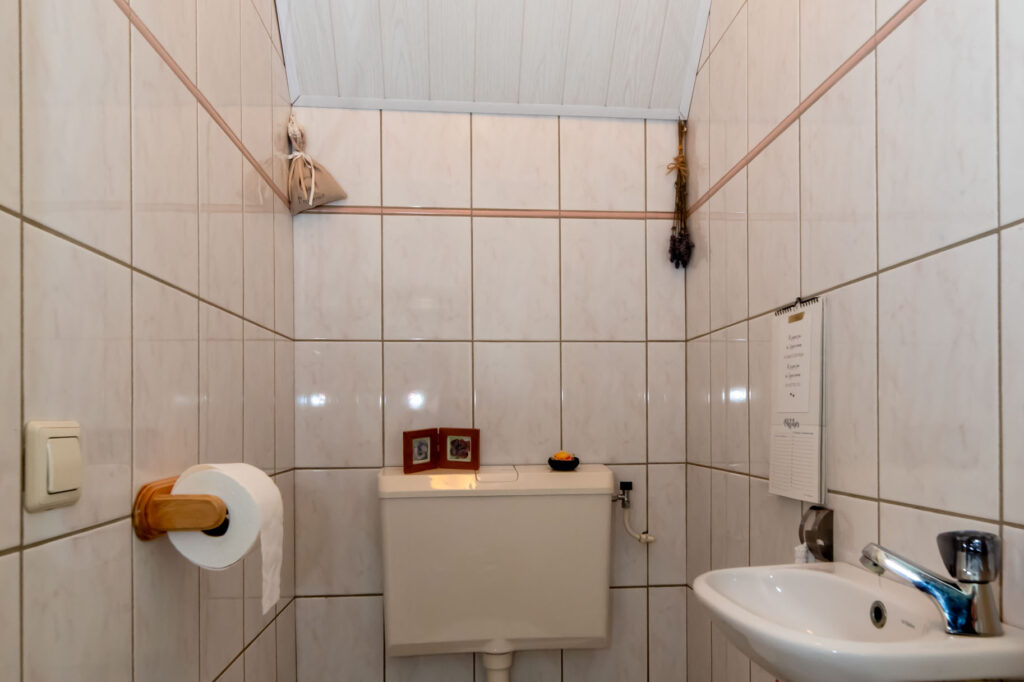 Op de eerste verdieping vind je maar liefst vier slaapkamers, een aparte was – en stookruimte en de badkamer. De badkamer is ingericht met een ligbad, douche, wastafel en een toilet.