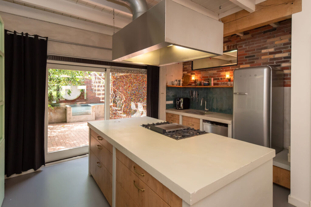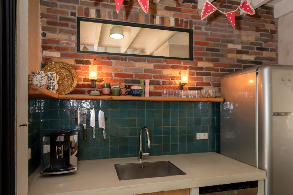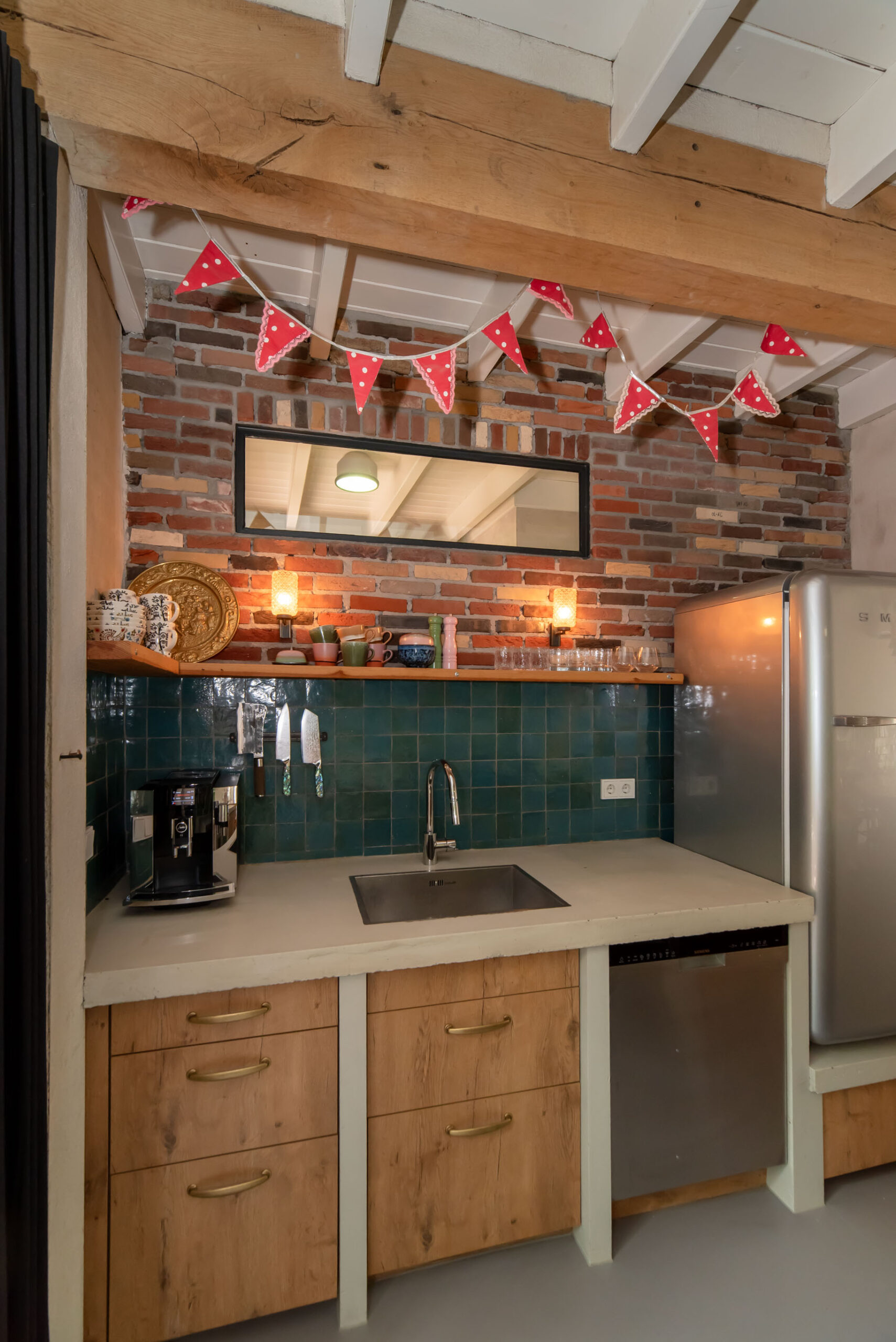 De woonkeuken vormt het hart van het huis. Deze is in 2015 vernieuwd en uitgevoerd met een modern kookeiland, volop kastruimte en diverse inbouwapparatuur zoals een vaatwasser, gasfornuis met oven en grillplaat. Een heerlijke plek om samen te koken, eten en borrelen. Vanuit de woonkeuken loop je door naar de gezellige, lichte woonkamer, waar de grote raampartijen zorgen voor veel daglicht en een fijne sfeer. Ook hier heb je toegang tot de onderhoudsvriendelijke tuin met ruime overkapping en een trap naar het verhoogde terras.