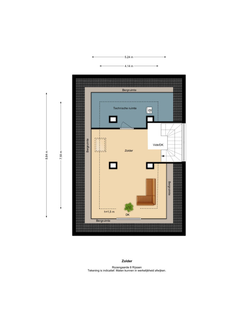 Let op: De vermelde afmetingen en gepubliceerde plattegronden zijn opgesteld volgens de Branche Brede Meetinstructie, gebaseerd op NEN2580, met onderverdeling in verschillende gebruiksoppervlakten. Omdat de publicatie van informatie via diverse externe kanalen verloopt, kan Daan Makelaars BV geen aansprakelijkheid aanvaarden voor onjuiste weergave van informatie.