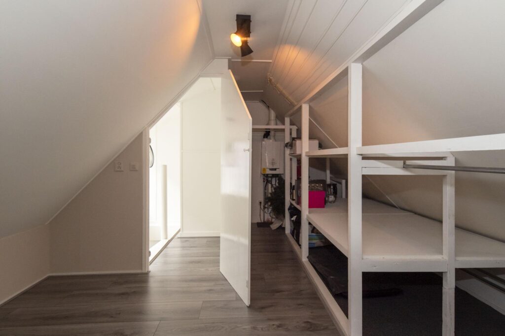 Op de eerste verdieping vind je een extra slaapkamer, praktische bergruimte en de CV-ketel.