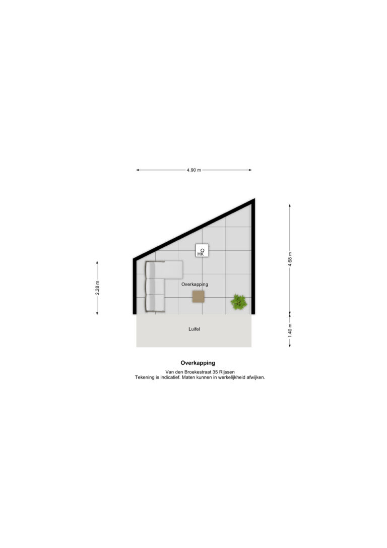 Vermelde maatvoeringen en gepubliceerde plattegronden zijn opgesteld binnen de kaders van de Branche Brede Meetinstructie; gebaseerd op NEN2580, met een onderverdeling in verschillende gebruiksoppervlakten. Omdat de publicatie ingevoerde gegevens via diverse, externe kanalen geschiedt, kan Daan Makelaars BV geen aansprakelijkheid aanvaarden voor onjuiste weergave van informatie.